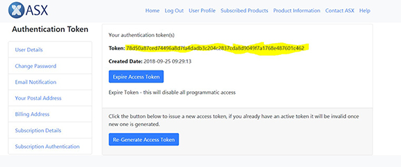 Log into MIA Web Application and navigate to: https://www.asxonline.com/mia/a/auth_token