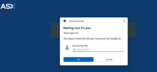 2c. When prompted, enter your Physical Security Key (e.g. YubiKey) PIN, then click 'OK'.